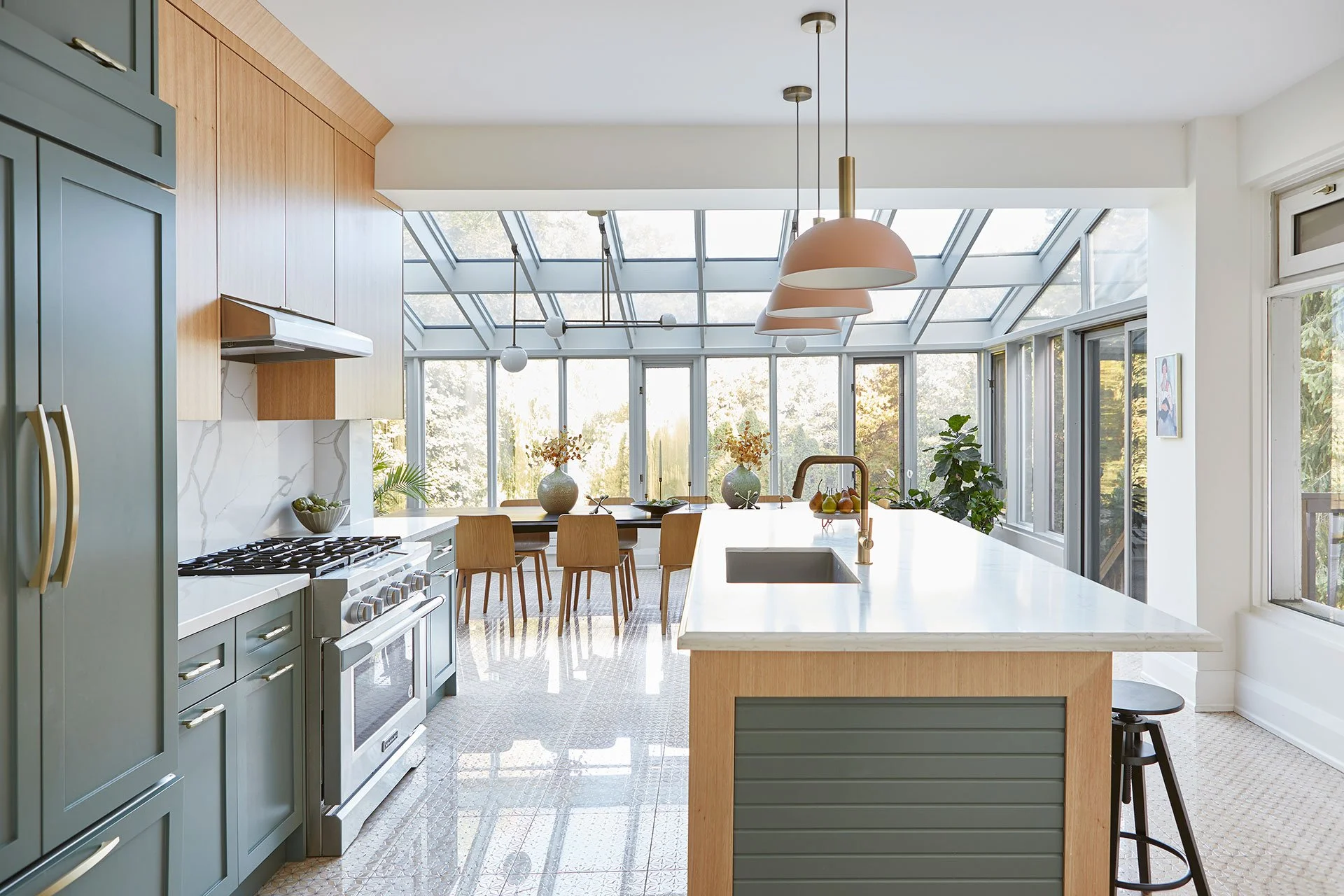 The goal of this project was to transform a dated 6,000-square-foot home in Toronto’s High Park neighborhood into a warm, functional family residence with a newly designed three-bedroom in-law suite on the lower level. The kitchen and main corridor were opened up to improve flow and sightlines toward the property’s mature, tree-lined views. We preserved the home’s original character while modernizing outdated areas, using colour, texture, and pattern to bring personality and balance throughout.